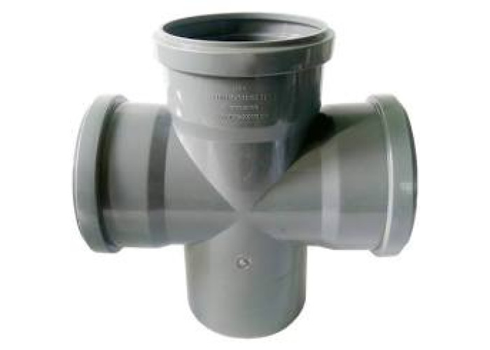 Хрестовина 110/110/110°90 використовується під час монтажу водопровідних і каналізаційних мереж для внутрішніх приміщень житлових, громадських і виробничих будівель. Цей фасонний елемент призначений для об'єднання в одній площині чотирьох стояків діаметром 110 мм. Два з них розташовані в одній площині й орієнтовані під кутом 90 градусів до основного напрямку.