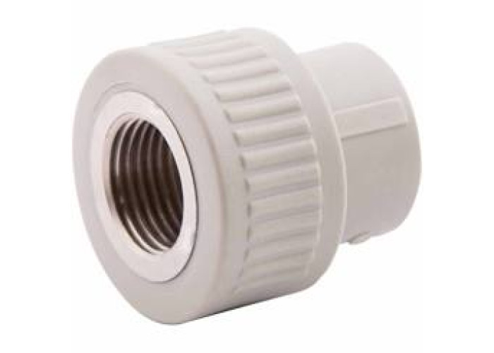Муфта комбінована з внутрішнім різьбленням застосовується для з'єднання поліпропіленових труб зі сталевими трубопроводами або запірною арматурою