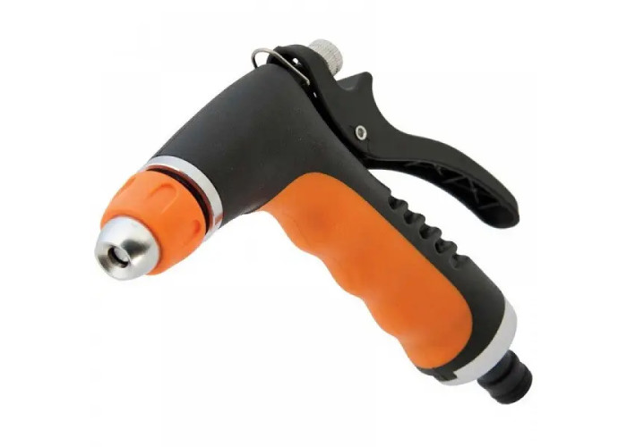 Пістолет розпилювач металевий регульований відрізняється наявністю можливості плавного регулювання води. А саме йому під силу плавна зміна від жорсткого струменя до аерозольного туману. Різні рослини потрібно зрошувати струменями різної форми та інтенсивності. Можливості цього пістолета дозволяють вибрати правильне рішення для будь-якої ситуації. Можливість регулювання форми струменя та витрати води забезпечує оптимальний догляд за всіма зеленими насадженнями, виключаючи перезволоження та необґрунтовані втрати води. Ми рекомендуємо Вам зупинити вибір на даному високоякісному металевому пістолеті, що поєднує витонченість форм з довговічністю, який чудово лежить в руці і здатний доставити справжнє задоволення від роботи в саду. Ергономічна рукоятка у зручному м'якому матеріалі. Регулювання потоку води: від концентрованого до розсіяного. Функція безперервної подачі води.